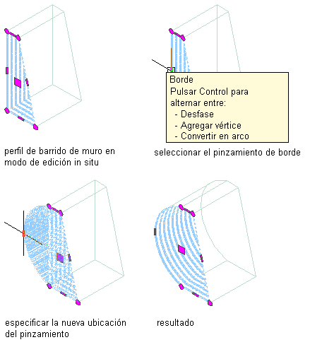 Para mostrar los pinzamientos de edición in situ de barridos de muro