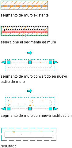 Utilice este procedimiento para modificar uno o varios muros aplicando las propiedades de una herramienta de muro. Entre estas propiedades se encuentran el estilo de muro y demás parámetros especificados en la herramienta que seleccione.