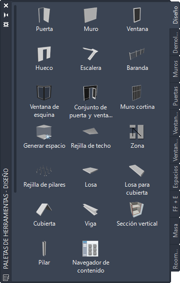Las herramientas de Conjunto de herramientas AutoCAD Architecture 2027 se dividen en tres categorías.