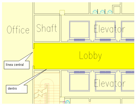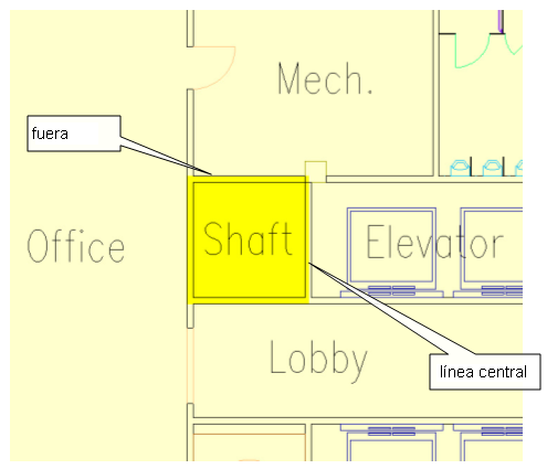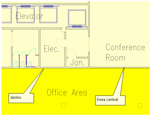 Los contornos brutos se crean en el eje del muro si hay espacio adyacente o si el espacio adyacente no es el frente o exterior de calle.