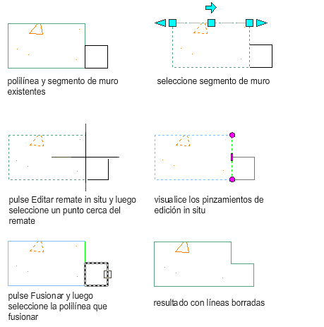 En el ejemplo siguiente, se fusiona un perfil con un componente de muro.