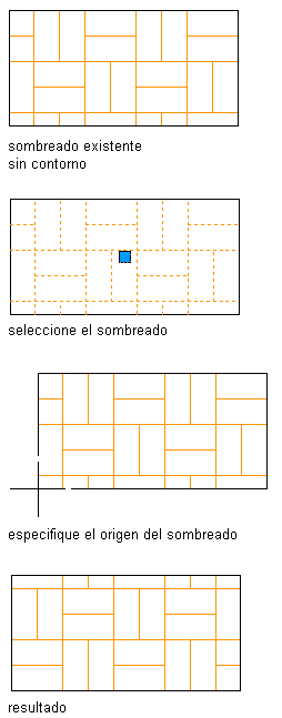 El sombreado se reubicará y adoptará como origen el punto final especificado.