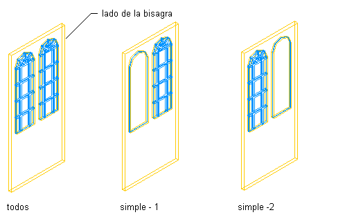 Para agregar montantes secundarios debe editar las propiedades de visualización del estilo de puerta para una representación de visualización, como Model o Elevation, en el punto en que desea que aparezcan estos montantes. Puede agregar montantes secundarios en representaciones de visualización independientes. También puede agregar montantes secundarios a una sola representación de visualización y aplicarlos a todas las representaciones de visualización de dicho estilo de puerta. Debe agregar el bloque de montantes secundarios a los componentes de vidrio del estilo de vidrio en las propiedades de visualización. Cada bloque de montantes secundarios se convierte en un componente de visualización del estilo de puerta.