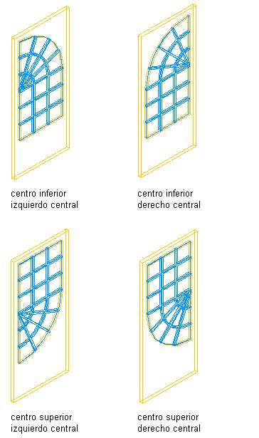 Vidrio de puerta semirredondo con montantes secundarios en forma de estrella