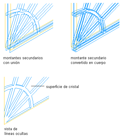 | convertir todos los montantes secundarios en un cuerpo con las juntas unidas | en Montante secundario, seleccione Convertir en cuerpo. |