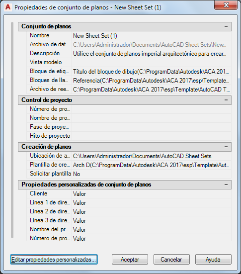 Para obtener información sobre las propiedades personalizadas, véase "Inclusión de información en planos y conjuntos de planos" en la Ayuda de AutoCAD.