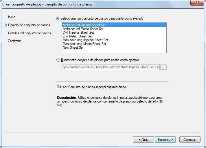 | utilizar un conjunto de planos que no aparezca en la lista | pulse Buscar otro conjunto de planos para usarlo como ejemplo y pulse |