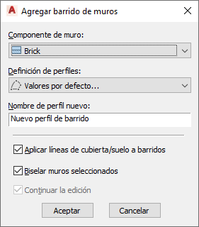 Adición de un perfil de barrido a un muro