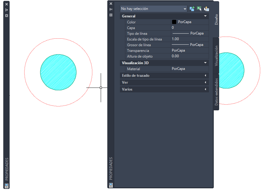 Paleta Propiedades oculta (izq.) y visible de nuevo (der.)