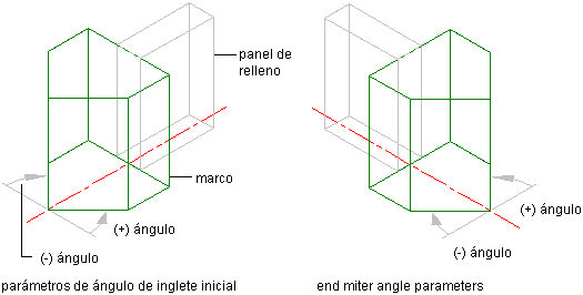 | en el punto inicial | escriba un ángulo en Inglete inicial y pulse Intro. |