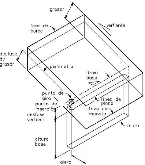 El cuerpo de una losa o losa para cubierta es una extrusión perpendicular al plano del perímetro, definida con la geometría siguiente: