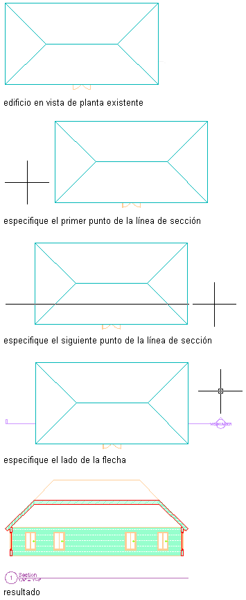 Una sección representa un modelo de edificio como si este estuviera cortado en vertical u horizontal para mostrar su interior con detalle. Puede crear objetos de sección bidimensionales (2D) o tridimensionales (3D), o una vista de sección automática del modelo. Puede controlar el tamaño y la forma de cualquier sección que genere y asignar materiales a la sección para obtener una representación visual óptima de los objetos seccionados. Los objetos de la sección permanecen vinculados al modelo de edificio utilizado para crearlos, a menos que la sección se descomponga. Debido al vínculo entre la sección y el modelo de edificio, cualquier cambio en el modelo de edificio puede reflejarse también en la sección.