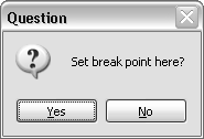 3. Click Yes to accept the breakpoint location, or No if that is not where you want to set the break.