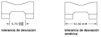 Si el valor de la cota puede variar en ambos sentidos, los valores positivos y negativos que establece el usuario se añaden al valor de la cota como tolerancias de desviación. Si los valores de tolerancia de desviación son iguales, se representan con el signo ± y se denominan simétricos. En caso de que sean diferentes, el valor positivo aparece encima del valor negativo.