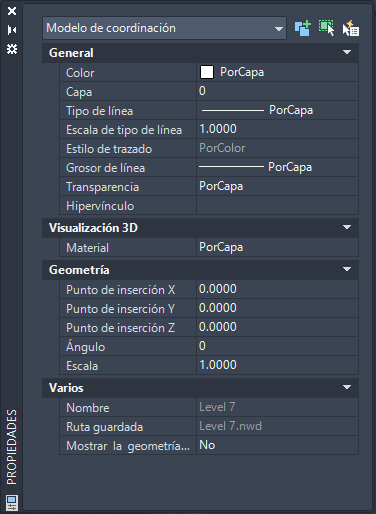 Para mostrar la paleta Propiedades, haga doble clic en el modelo de coordinación o en el cuadro delimitador que aparece alrededor del modelo.