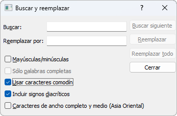 Se muestra el cuadro de diálogo Buscar y reemplazar.