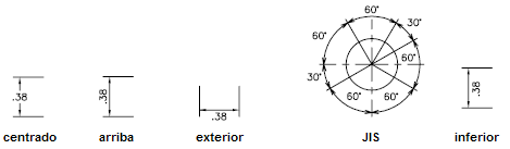 Controla la ubicación horizontal del texto de cota a lo largo de la línea de cota, en relación con las líneas de referencia. (Variable de sistema DIMJUST)