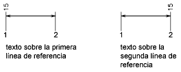 El texto se coloca dentro de las líneas de referencia si los segmentos resultantes son como mínimo tan largos como el intervalo de texto. El texto ubicado por encima o por debajo de la línea de cota se coloca dentro únicamente si los extremos de cota, el texto de cota y el margen dejan espacio suficiente para el siguiente intervalo. (Variable de sistema DIMGAP)