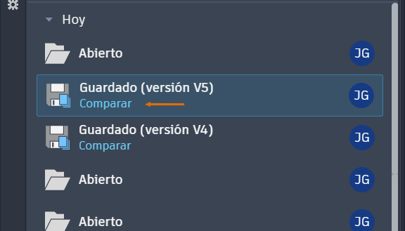 Cuando utilice Información de actividad con un proveedor de almacenamiento en la nube compatible, como Forma Data Management, Google Drive, OneDrive, Box o Dropbox, se registrará una nueva versión de cada dibujo cada vez que lo guarde. Haga clic en Comparar en cada mosaico de versión para comparar fácilmente las versiones anteriores y las actuales.