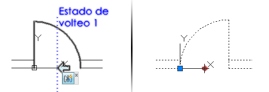 Una acción de simetría refleja los objetos seleccionados de una referencia a bloque dinámico con respecto a un eje de simetría.