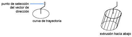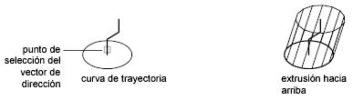 Seleccione una línea, un arco, un círculo, una elipse o una polilínea para barrer en una trayectoria recta. A continuación seleccione una línea o una polilínea para determinar el primer y el último punto de un vector que indica la dirección y la longitud de la malla poligonal.