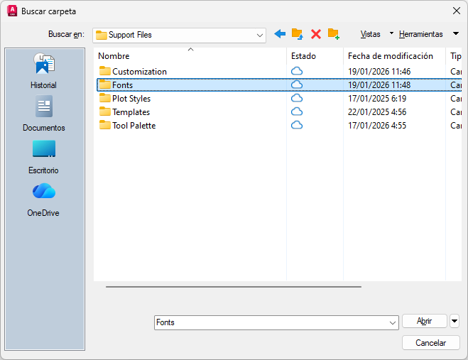 - Vaya a una carpeta o una ubicación de archivo en el proyecto de Autodesk y haga clic en Abrir.
