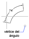 Utiliza el punto de selección como origen de la primera línea de referencia. El centro del arco es el vértice del ángulo.