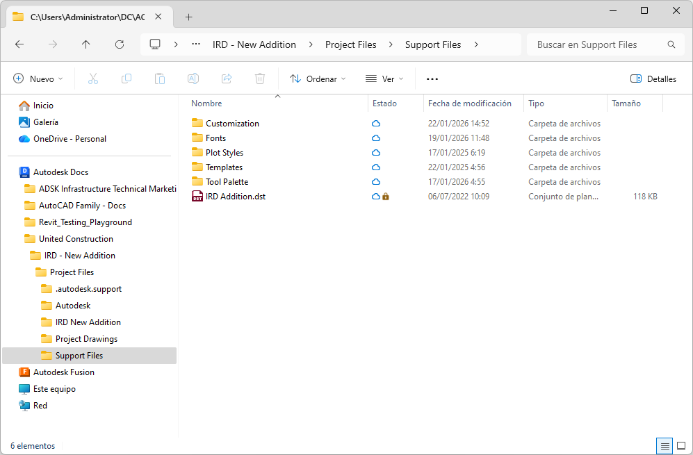Los archivos de soporte añadidos a las carpetas locales se sincronizarán en el proyecto de Autodesk con Desktop Connector.