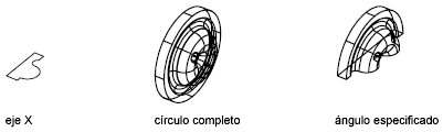 Un ángulo positivo somete los objetos a revolución en sentido antihorario. Un ángulo negativo somete los objetos a revolución en sentido horario. También es posible arrastrar el cursor para especificar y previsualizar el ángulo de revolución.