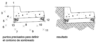 Nota: También puede borrar los objetos de contorno de un sombreado existente o recortar un sombreado existente para los objetos que cruzan las aristas de sombreado.