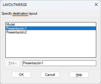 Specify destination layout or [?] <Model>: Specify an existing layout name or enter a new name to create a new layout