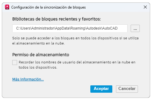 Controla el permiso para recordar el nombre de usuario del almacenamiento en la nube en todos los dispositivos. Si se selecciona esta opción, se ofrece una experiencia más personalizada al acceder a los bloques recientes y favoritos en diferentes dispositivos.