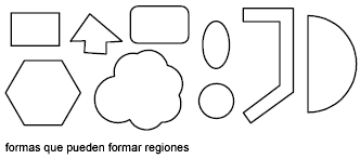 Es posible crear regiones a partir de objetos que forman bucles cerrados. Un bucle puede estar constituido por una combinación de líneas, polilíneas, círculos, arcos, elipses, arcos elípticos y splines que forman un área cerrada.