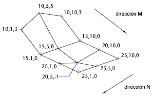 Al crear la malla, debe especificarse el tamaño de la misma en las direcciones M y N. El número total de vértices que indique para la malla será igual al valor M multiplicado por el valor N.