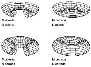 Las mallas pueden abrirse o cerrarse. Si los lados inicial y final de la malla no se tocan, dicha malla estará abierta en una dirección dada, como se muestra en los siguientes ejemplos.
