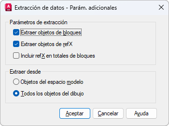 Incluye todos los objetos del espacio modelo y del espacio papel del dibujo, incluida la información de dibujo. Activado por defecto.