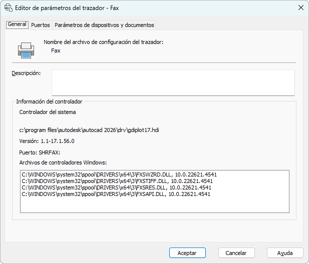 - El nombre de la impresora del sistema (si el trazador configurado es la impresora del sistema).