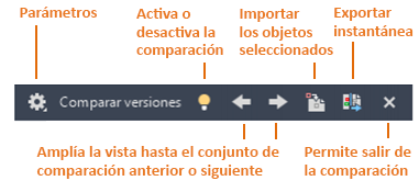 La barra de herramientas de Comparar versiones le ayuda a realizar estas funciones: