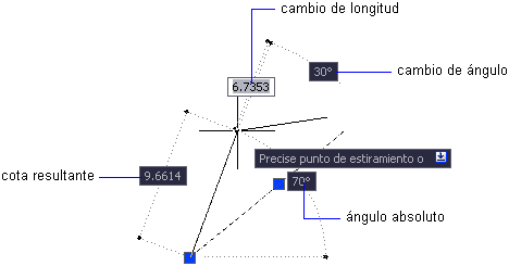 Cuando utilice pinzamientos para editar un objeto, la información de herramientas de entrada de cota podrá mostrar la siguiente información: