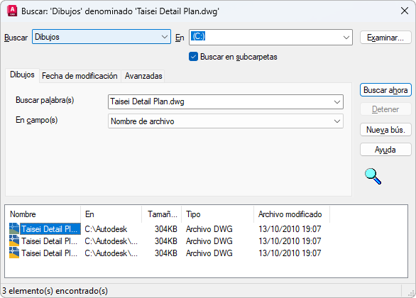 Precisa el nombre del dibujo, bloque, capa, refx u otro tipo de contenidos que desee buscar.