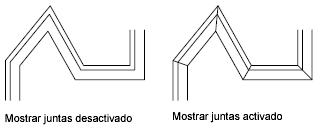Controla la visualización de las juntas de los vértices de cada segmento de línea múltiple. Una junta también se conoce con el nombre de inglete.