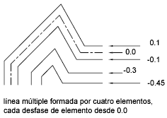 Muestra todos los elementos del estilo de línea múltiple actual. Cada elemento del estilo está definido por el desfase a partir del centro de la línea múltiple, el color y el tipo de línea. Los elementos se muestran siempre en orden decreciente de sus desfases.