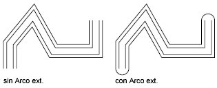 Muestra un arco entre los elementos más exteriores de la línea múltiple.