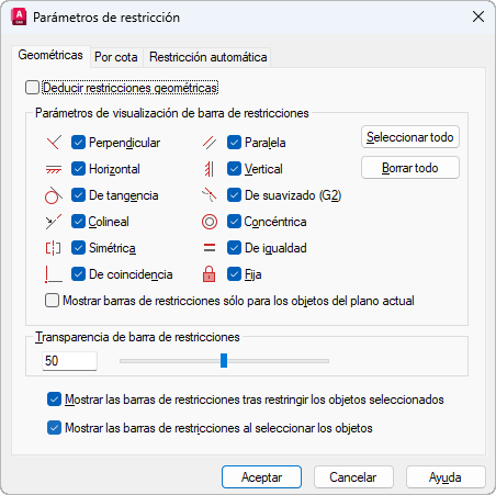 Controla la visualización de las restricciones en las barras de restricciones.