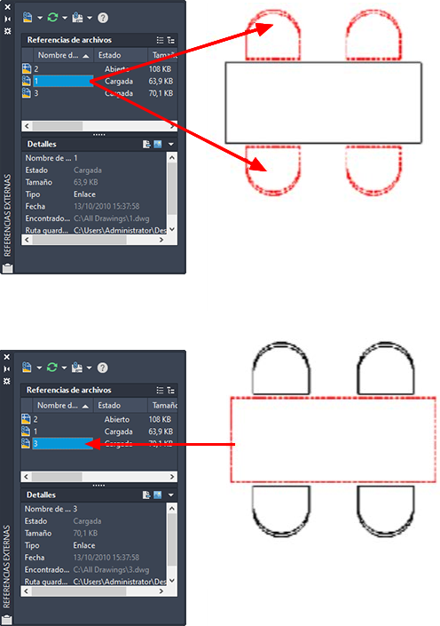 Cualquier archivo de dibujo se puede enlazar en el dibujo actual como referencia externa o refX.