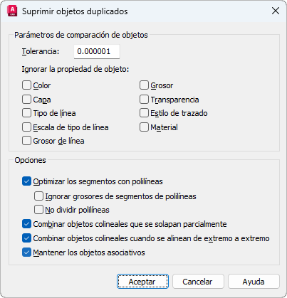 Elimina la geometría duplicada así como las líneas, arcos y polilíneas solapados. Asimismo, combina este tipo de elementos parcialmente solapados o contiguos.