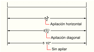El formato de fracción de las cotas puede establecerse con la variable de sistema DIMFRAC cuando la variable de sistema DIMLUNIT está establecida en 4 (pies y pulgadas II) o 5 (fraccionarias).