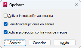 El mecanismo de protección contra virus muestra un mensaje de advertencia interno siempre que se abre un dibujo que pudiera contener virus de macros.