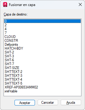 Muestra una lista alfabética de las capas en las que se pueden fusionar los objetos o las capas seleccionados.
