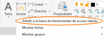 Muestra las herramientas utilizadas con frecuencia con la barra de herramientas de acceso rápido.